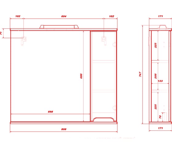 Зеркало-шкаф Loranto Коралл-58 правое, 580х745х180 CS00025722