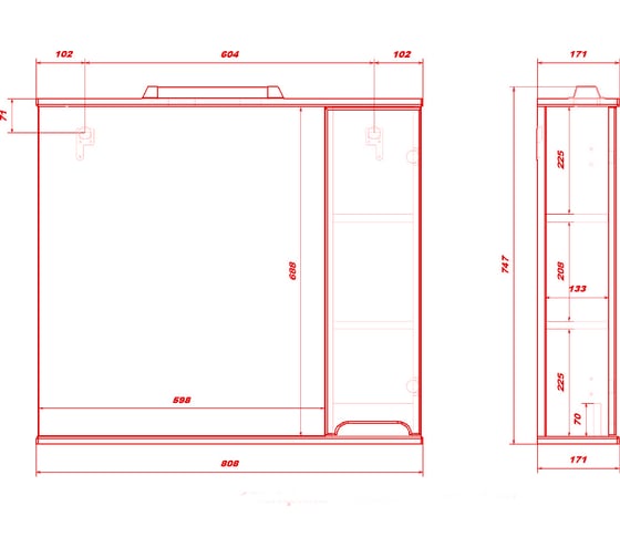 Зеркало со шкафчиком АСБ-МЕБЕЛЬ Вита 80, правое 9901