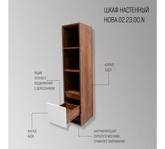 Шкаф зеркало ИТАНА Nrava Aqua Уют 50 510х200х700 левый с полкой 38582