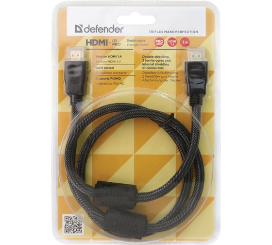Цифровой кабель Defender HDMI-03PRO HDMI M-M, ver 1.4, 1.0 м 87340