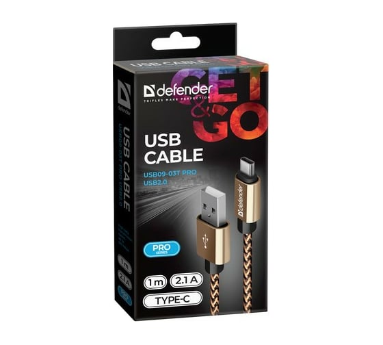 USB кабель DEFENDER USB09-03T PRO USB2.0 Зеленый, AM-Type-C, 1m, 2.1A 87816