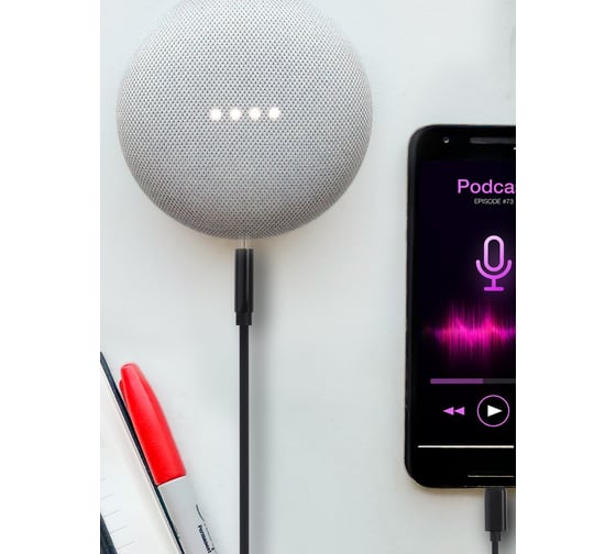 Переходник USB GCR Type C - 3.5mm mini jack гибкий черный VIV52I308