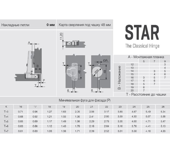 Мебельная петля ТУНДРА накладная, 45 градусов, без доводчика 9917521