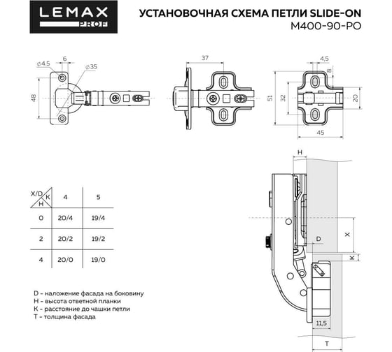 Комплект петель Lemax Prof 4xM401-45(L) SET4(M401-45(L))