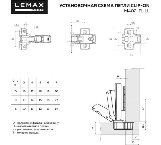 Петля Lemax PROF clip-on с доводчиком, 110 градусов, вкладная, никель M350-Inst
