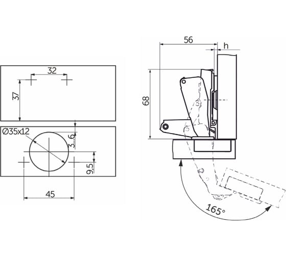 Внутренняя петля Tech-Krep c доводчиком Clip-on премиум D35 2 шт. пакет 148144