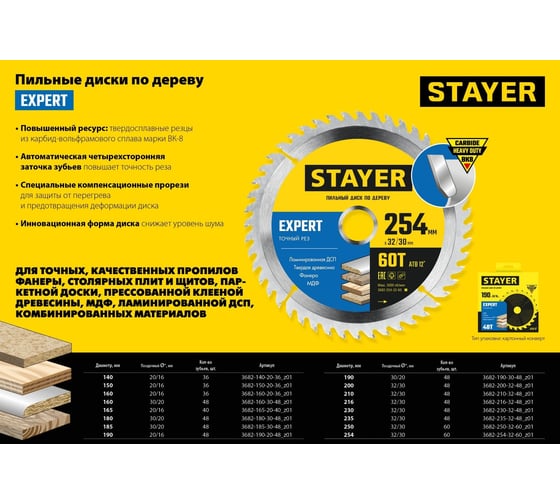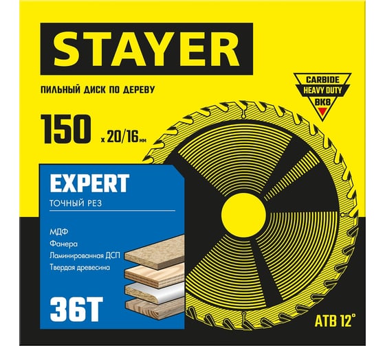 Пильный диск по дереву DENZEL 190x20 мм, 48 зубьев 733387