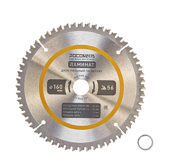 Пильный диск по ламинату 160 мм (56Т; 20/16 мм) РОСОМАХА 241605