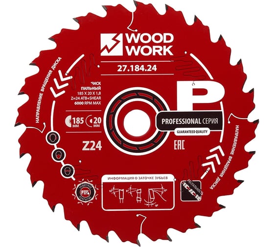 Пильный диск по дереву KRAFTOOL Precision 185x20 мм, 48т 36952-185-20