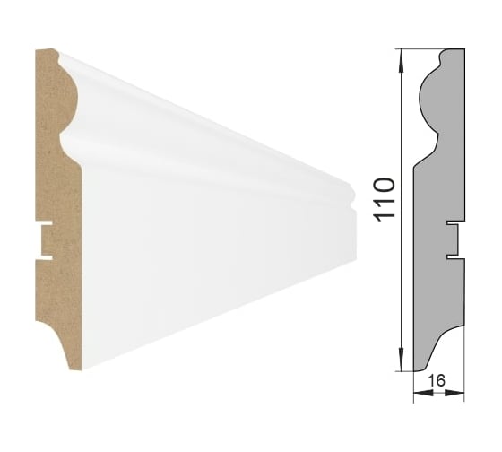 Плинтус МДФ GRACE Смартпрофайл Пеинт 116 (116 мм 2,4 м, белый под покраску) УТ000024573