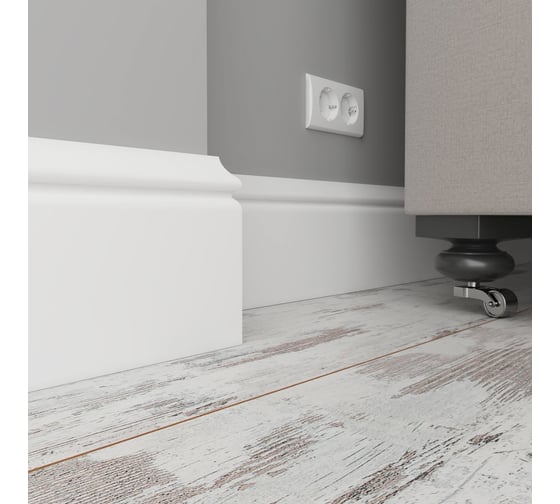 Напольный плинтус STELLA 60 МДФ, 2000x60x16 мм, белый, в упаковке 20 шт. ЦБ-00004401