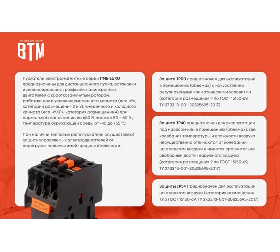 Пускатель ВТМ (S) ПМЕ-012-10А-110АС-(1з)-РТЛ1014-2(7,0-10,0А)-УХЛ4-Б-EURO ВТМ00073721