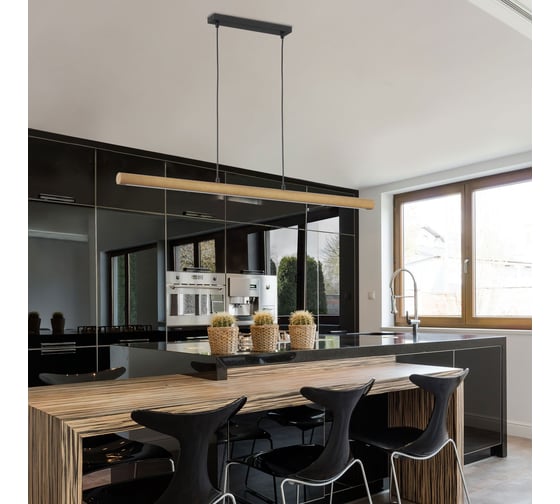 Подвесная люстра Мелодия Света PL6238-8 BK+Wood 000060429