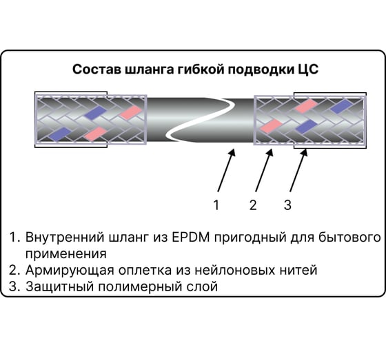 Гибкая подводка для воды СВК 1/2, 60см г/ш, сталь Н0000003206