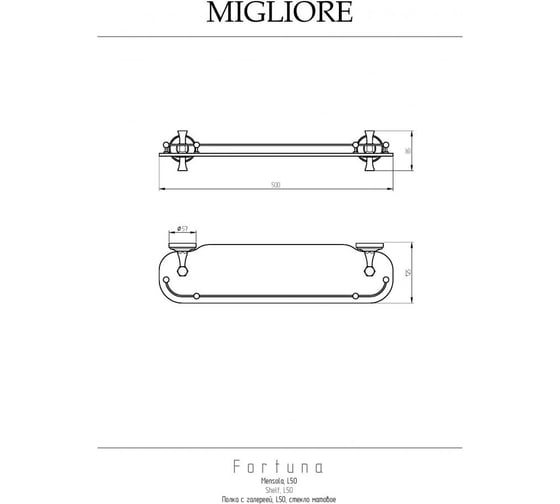 Полка Migliore FORTUNA c галереей, L50 см, стекло матовое/золото 27669
