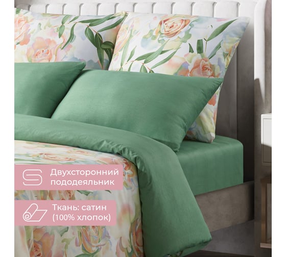Комплект постельного белья Ecotex однотонный сатин/сатин-люкс Моноспейс 1,5 спальный КС1/зеленый