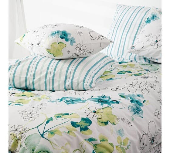 Комплект постельного белья Этель 2 спальное, Flower strip (вид 1), 175х215 см, 200х220 см, 50х70 см - 2 шт., поплин 9947020