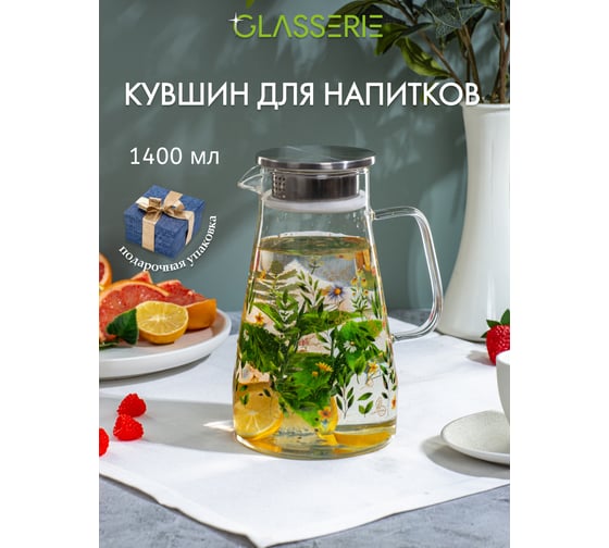 Стеклянный кувшин для воды и напитков Moulinvilla Rohe с фильтром, 1000 мл DG-J-1000
