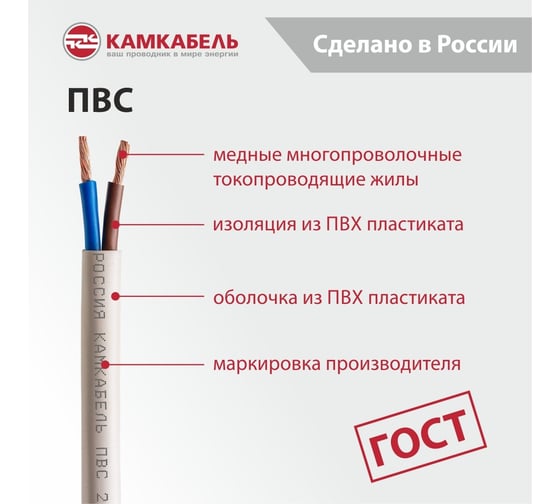 Провод ПВС Кабель-Арсенал 2x0,75, ГОСТ, 100 м KARS-51127