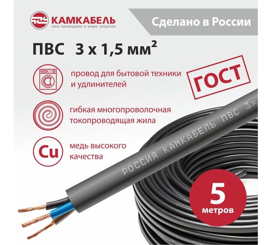 Провод ПВС Камкабель 3x1.5 мм 100 м ГОСТ 231Я930G0000Ъ600100М