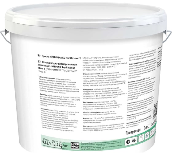 Эмаль универсальная шелковисто-матовая LINNIMAX Аква База 3 0,85 л, 948105450