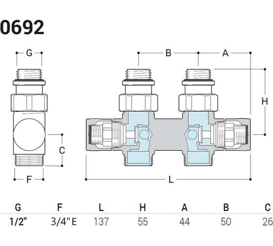 Н-образный узел с термостатическим и запорным клапанами FAR серебристый, прямой, М24x19-3/4"ВР FL 0267 C12
