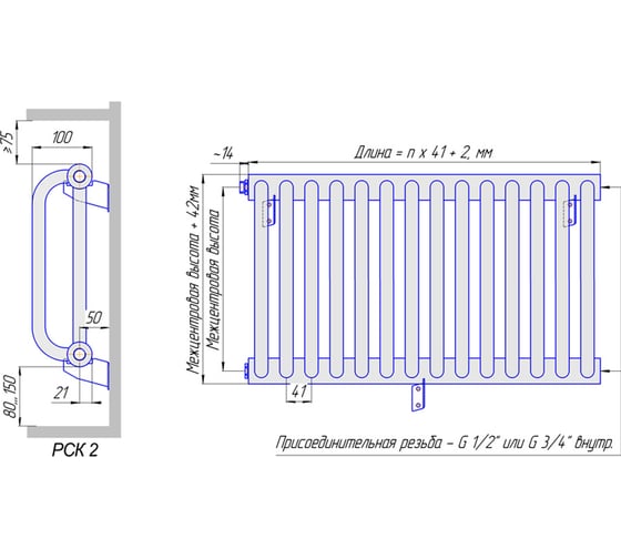 Радиатор КЗТО PC 2-300-32 1/2 нп прав