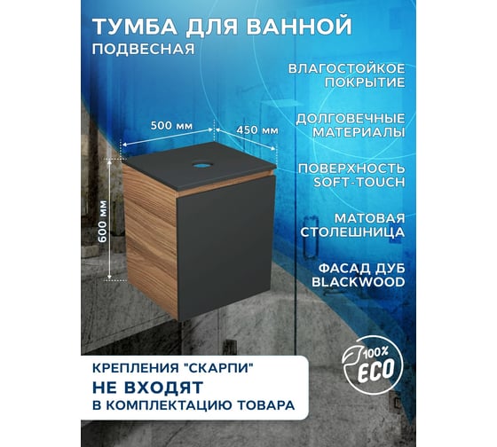 Подвесная тумба с раковиной ORANGE Line 60 см, графит/черный Li-60TugMDF+B07-345B