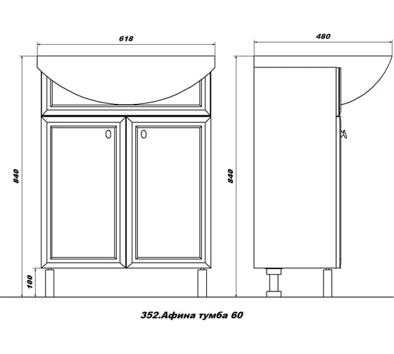 Комплект Sanstar напольная тумба Аура 60 с раковиной Амур 60 353.1-1.4.1.КАМУ