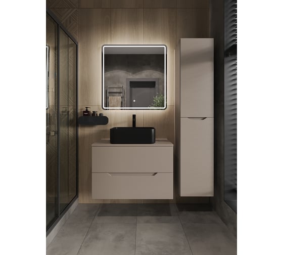 Подвесная тумба с раковиной ORANGE Line 80 см, латте/черный Li-80TuLMDF+B01-475MB