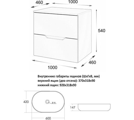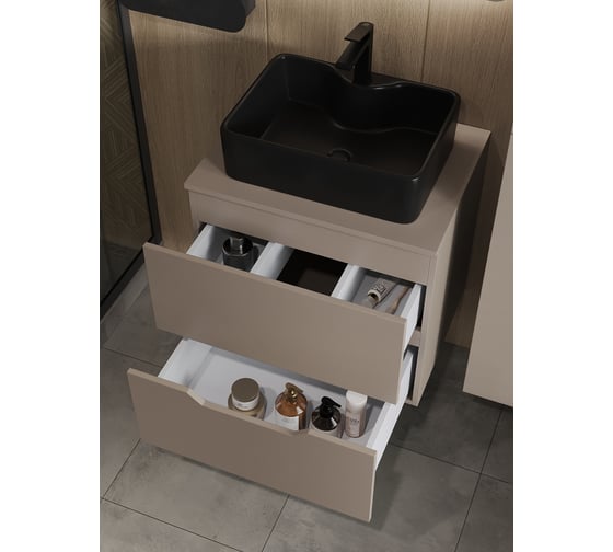 Подвесная тумба с раковиной ORANGE Line 60 см, латте/черный Li-60TuLMDF+B01-475MB