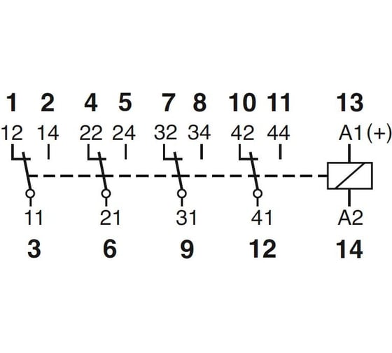 Промежуточное реле Finder 4 перекидных контакта 7А, = 12В DC, 553490120040