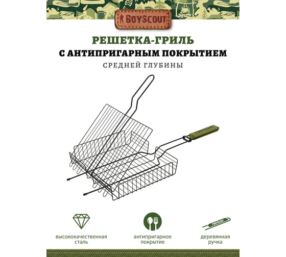 Решетка для гриля Green glade с деревянной ручкой 2023