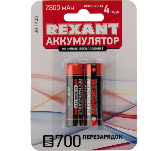 Аккумулятор REXANT 18650 Li-ion 2800 mAH 3.7 В с защитой 30-2030-03