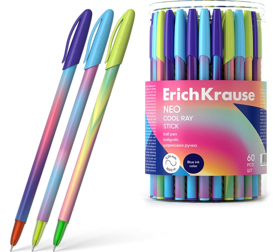 Ручка шариковая Erichkrause Neo Stick Pastel 0,7, Super Glide Technology, цвет чернил синий (в тубусе по 60 шт,) 55380