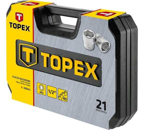 Головки сменные 21 шт. (1/2", CrV) TOPEX 38D642