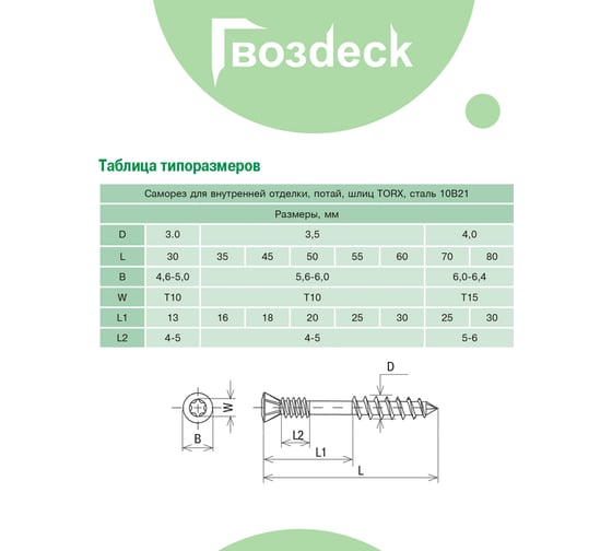 Потайной саморез для пола Гвозdeck 3.5х55, T10, 400 шт. 20413555YETXRD2