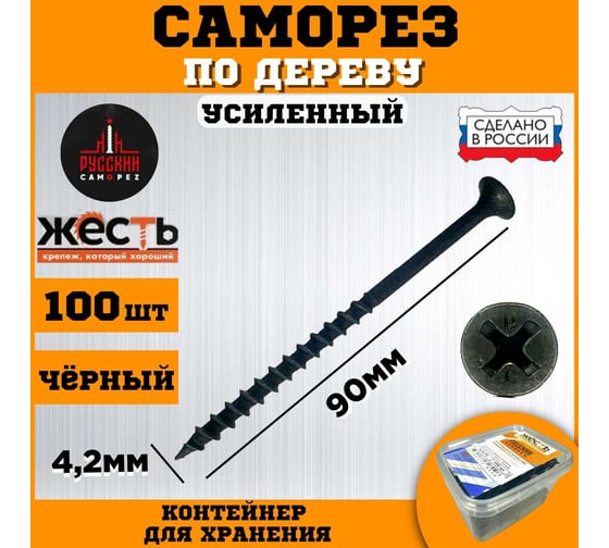 Усиленный саморез FastenPro ШСГД 4,2x90 150 шт., FP-б.пл.конт. 1150 мл 14-0020617