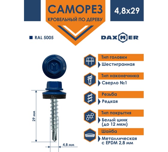 Саморез ООО ПКФ Сварком п/ш 4,2x25 RAL5005 синий 200 шт k00015509