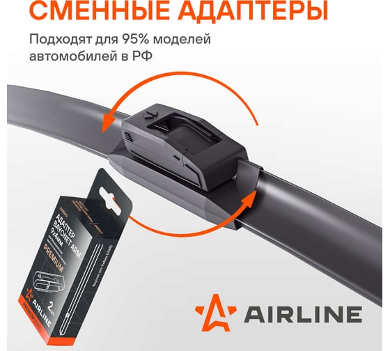 Бескаркасная щетка стеклоочистителя Airline SILICONE 700 мм (28) 5 адаптеров AWBBS013