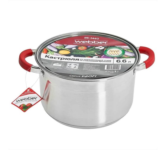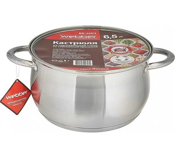 Кастрюля из нержавеющей стали со стеклянной крышкой Webber BE-199/2 d=24, 6.3 л 0R-00004910
