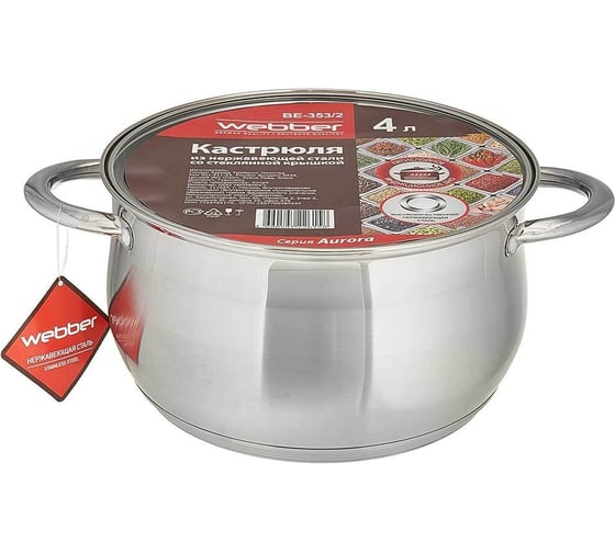 Кастрюля из нержавеющей стали со стеклянной крышкой Webber BE-197/2 d=20, 4.0 л 0R-00004908