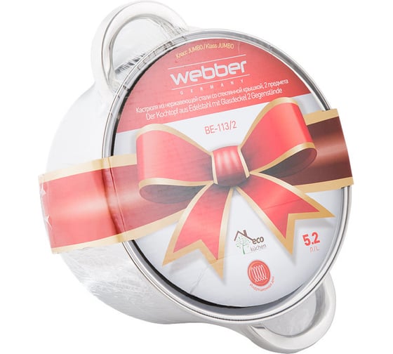 Кастрюля из нержавеющей стали со стеклянной крышкой Webber BE-159/2 d=24, 5.8 л 0R-00004251