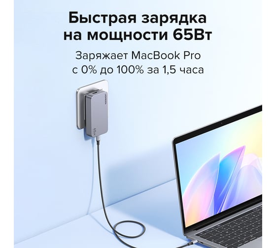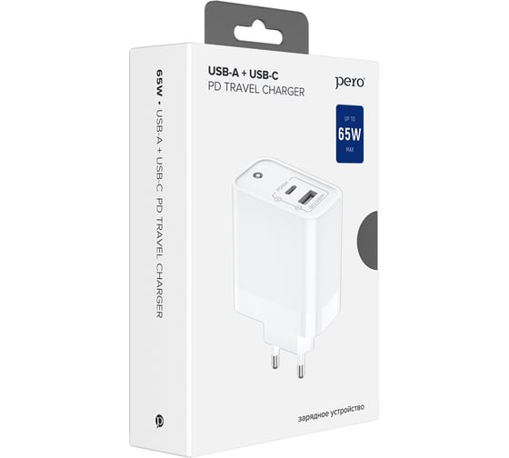 Сетевое зарядное устройство PERO TC15 USB-A QC3.0 + USB-C PD, 65W белый ТС15W