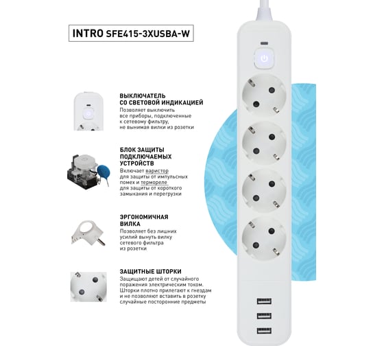 Сетевой фильтр Uniel S-GSR4-3 U2C1 WHITE/GREY UL-00012108
