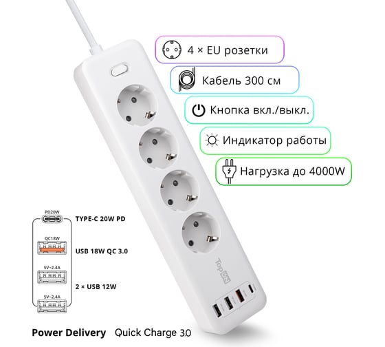 Сетевой фильтр SKYLINE с USB зарядкой USP-330 Black PD3.0 S00003679