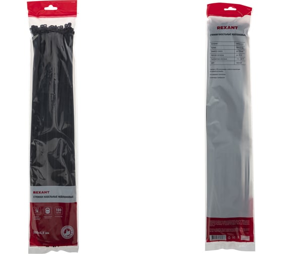 Нейлоновая стяжка под винт REXANT 200x4,3мм, черная 100 шт/уп 07-0205