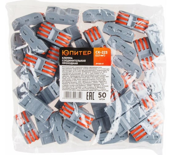 Клемма соединительная проходная ЮПИТЕР СК-223 (2.5 мм2) (50 шт) JP7201-17