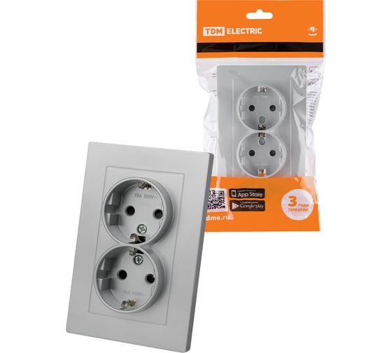 Розетка ЮПИТЕР двойная скрытая белая с заземлением Эконом JP7411-03