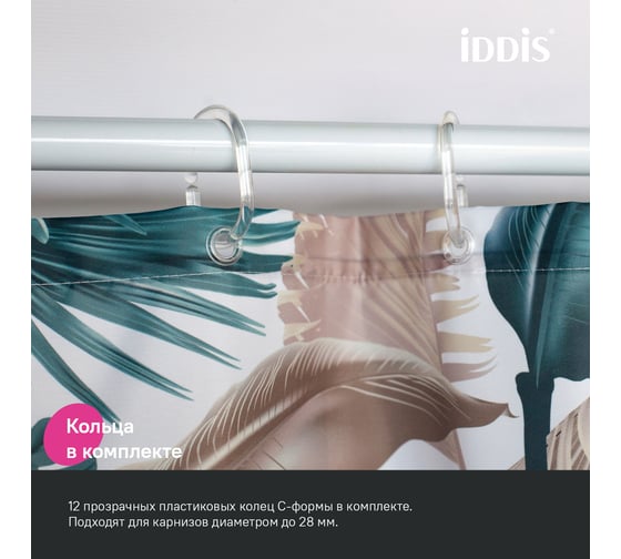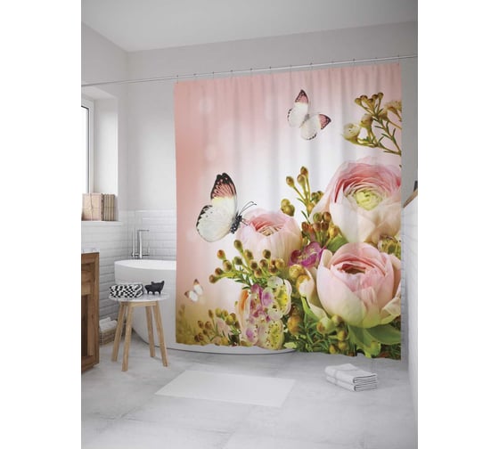 Штора (занавеска) для ванной JoyArty "Садовый цвет" из сатена, 180х200 см с крючками, sc_52441